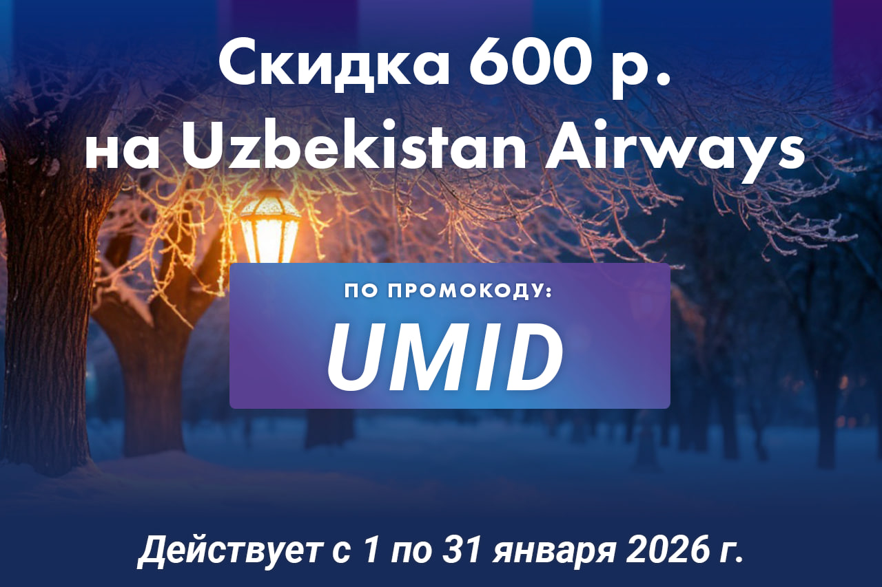 Примените его при покупке билетов на любой рейс Uzbekistan Airways и получите скидку 600 руб.