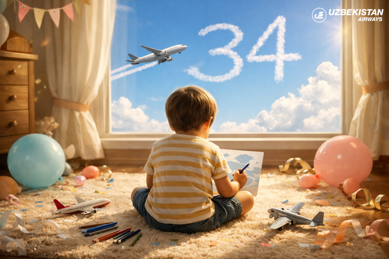 В честь 34-летия авиакомпании Uzbekistan Airways объявляется праздничный конкурс детского рисунка. Инициатива направлена на поддержку детского творчества и объединяет любовь к путешествиям, авиации и небу.
